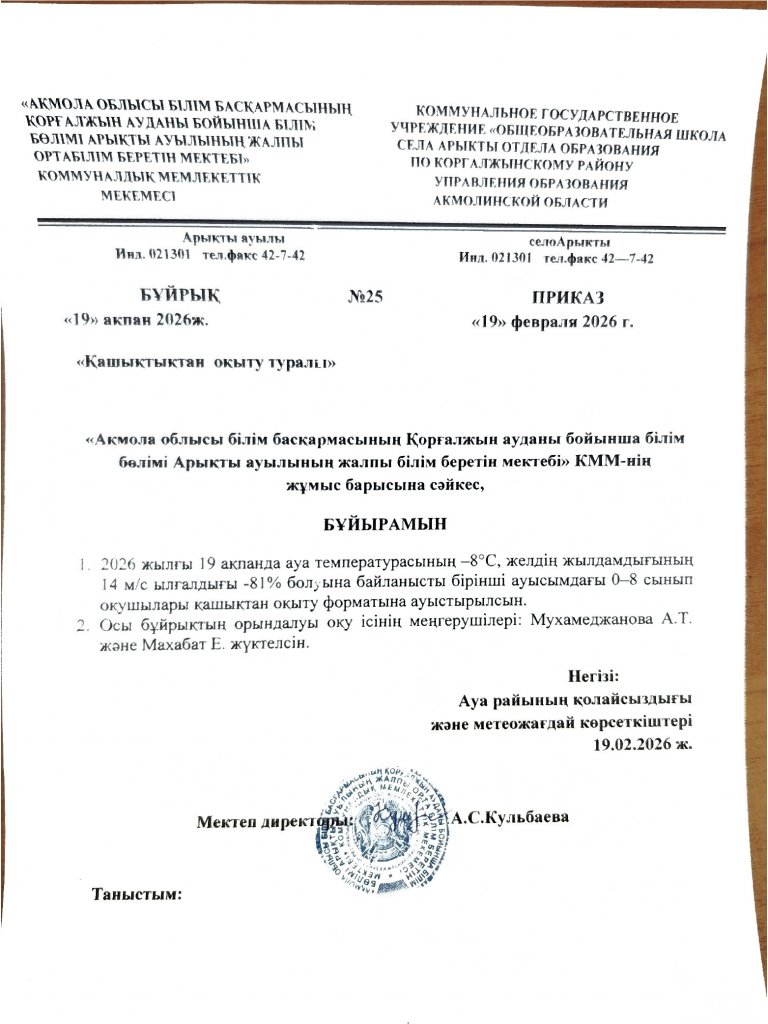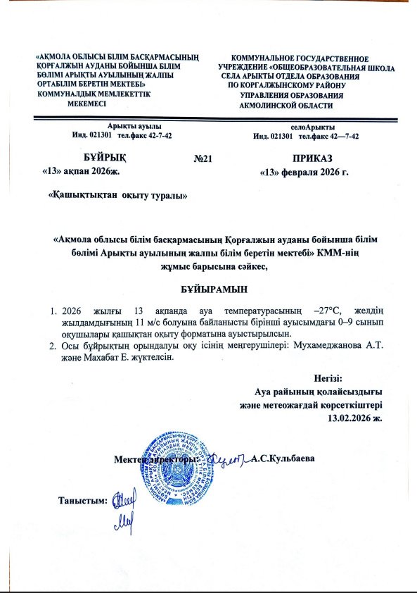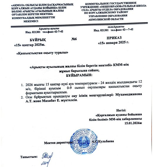 «Ақмола облысы білім басқармасының Қорғалжын ауданы бойынша білім бөлімі Арықты ауылының жалпы орта білім беретін мектебі» КММ-нің 2024 жылғы мемлекеттік қызметтер көрсету саласындағы қызметі туралы жария есепті өткізу туралы қорытынды