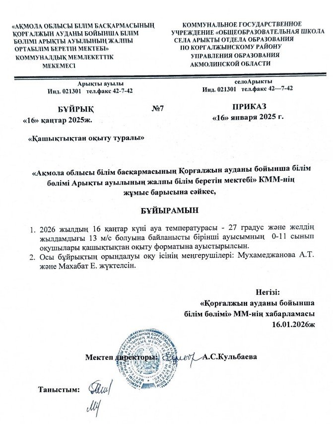БІЛІМ БӨЛІМІ АРЫҚТЫ АУЫЛЫНЫҢ