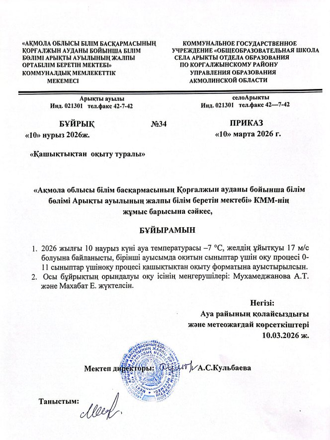 БІЛІМ БӨЛІМІ АРЫҚТЫ АУЫЛЫНЫҢ